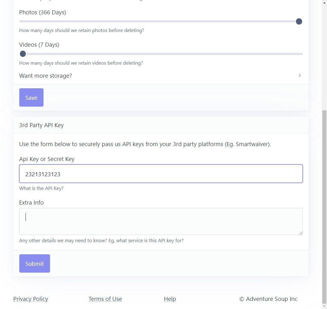 Add an API Key to Picsaurus for your Waiver or Rez System